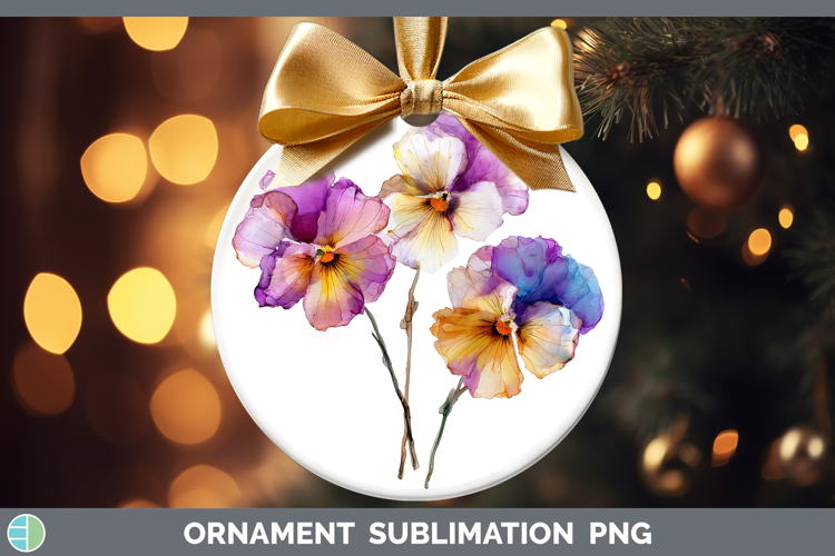 Pansy Flowers 02 Alcohol Ink Ornament Sublimation Design