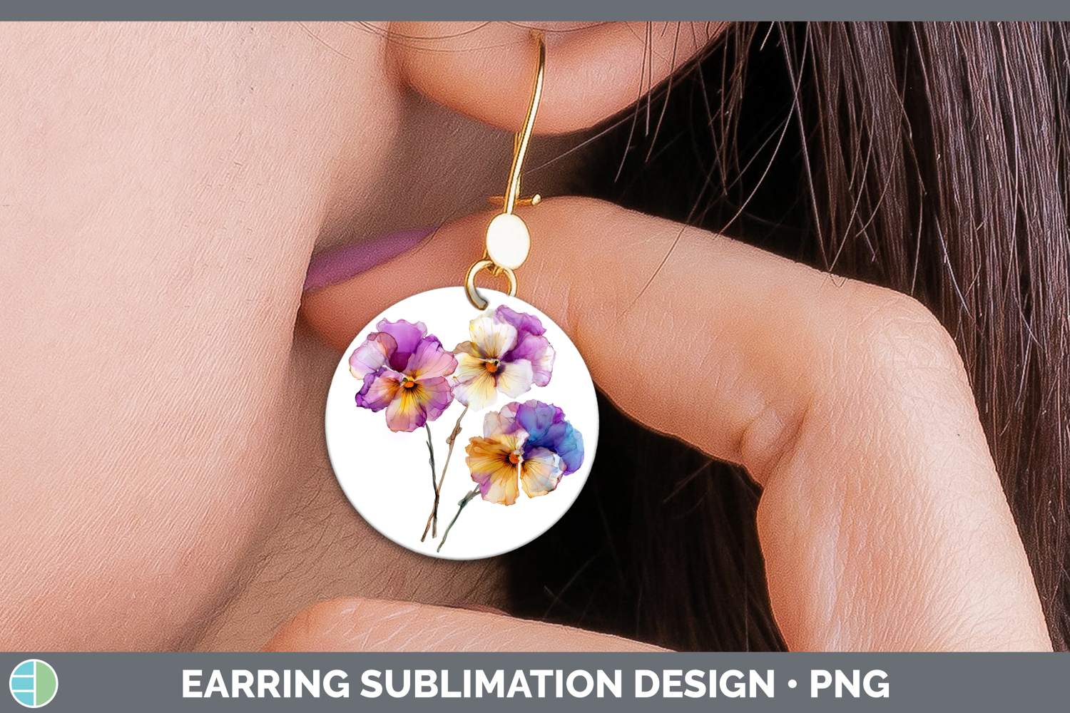 Pansy Flowers 02 Alcohol Ink Round Earrings Sublimation Desi