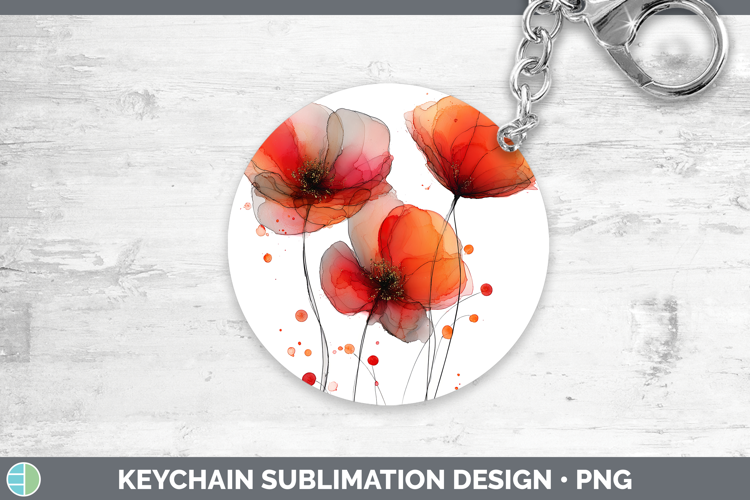 Poppy Flowers 02 Alcohol Ink Keychain Sublimation Design