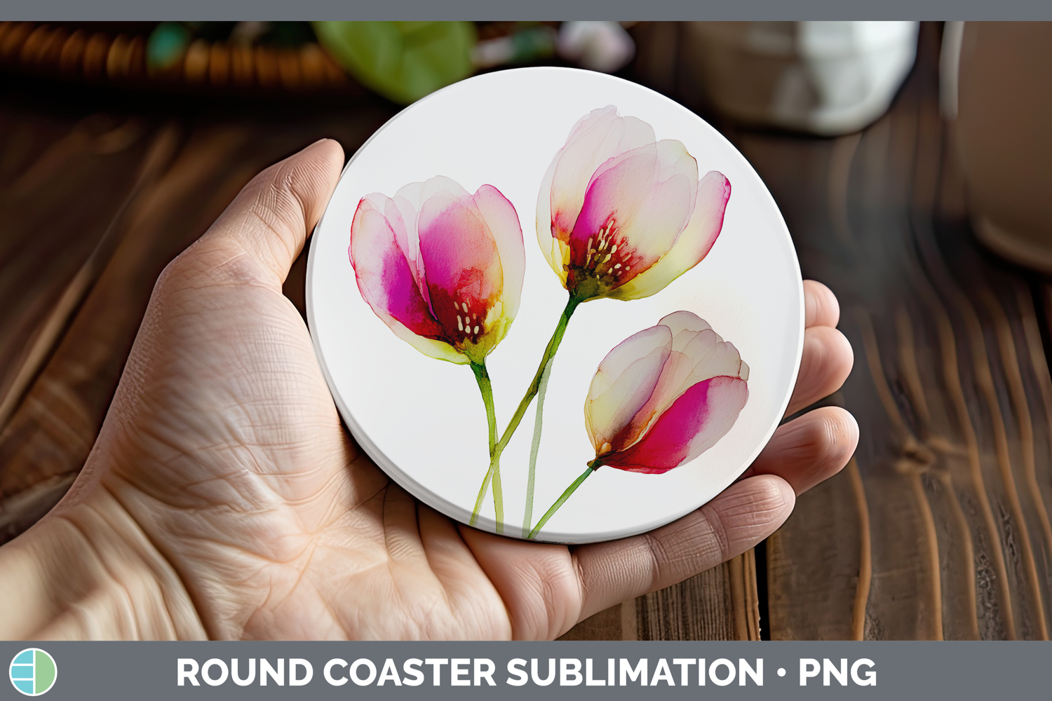 Tulip Flowers 02 Alcohol Ink Round Coaster Sublimation Desig