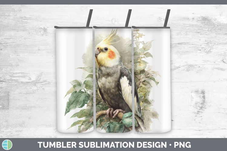 Cockatiel Parrot Botanicals Tumbler Sublimation Design