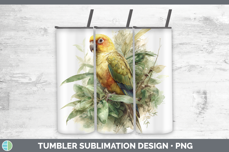 Golden Parakeet Parrot Botanicals Tumbler Sublimation Design