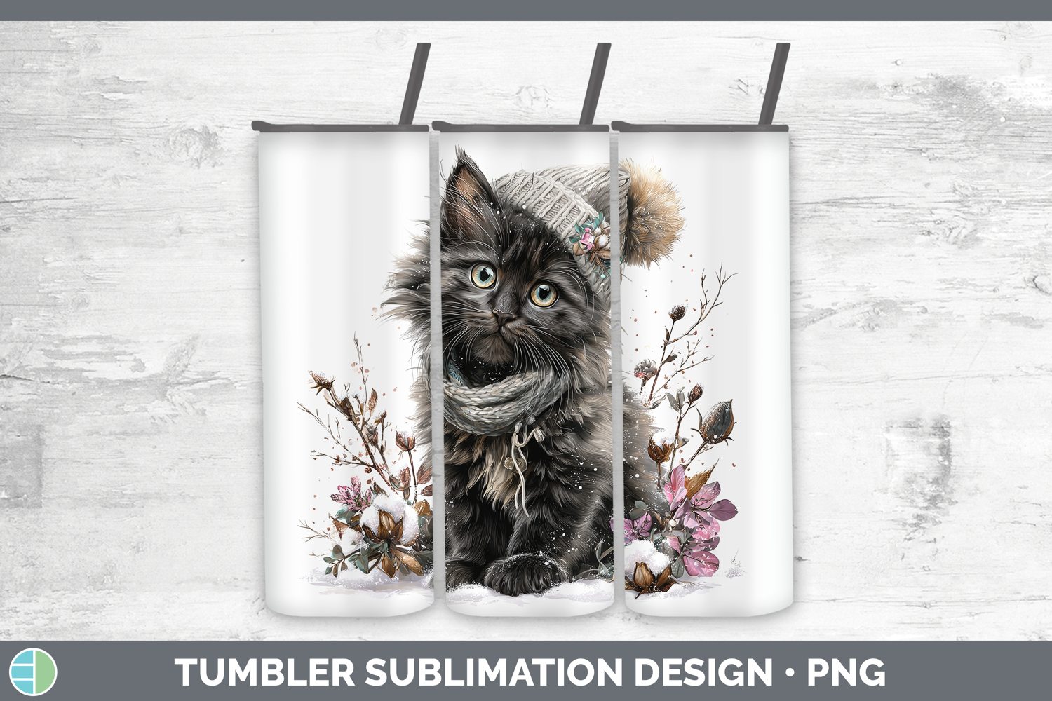 Black Cats Winter Knit Hat Tumbler Sublimation Design