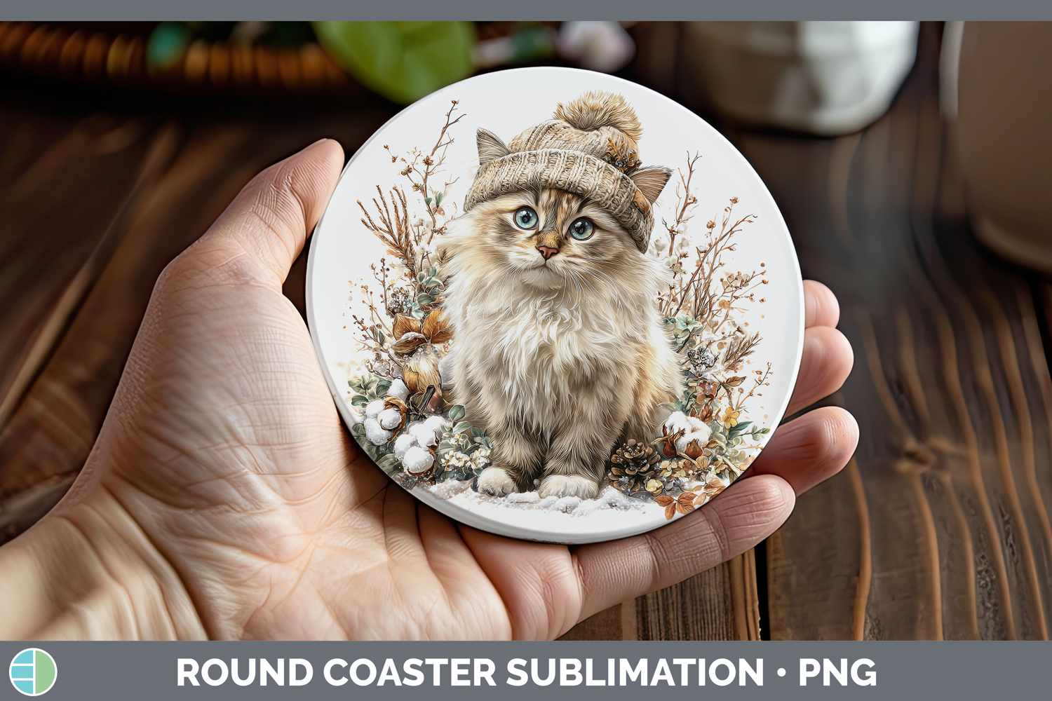 Similar Design Products to Birman Cats Winter Knit Hat Round Coaster Sublimation Design