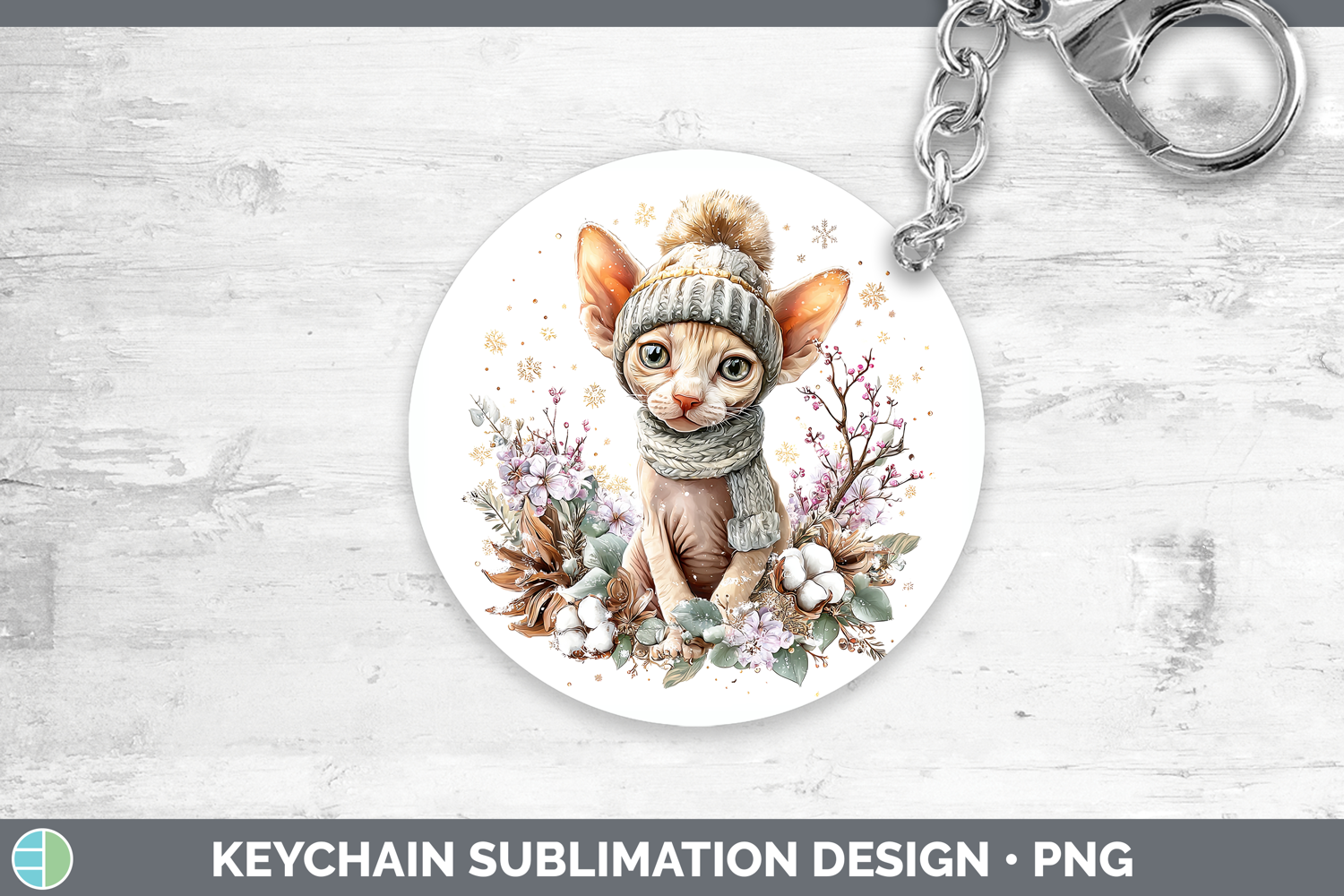Sphynx Cats Winter Knit Hat Keychain Sublimation Design