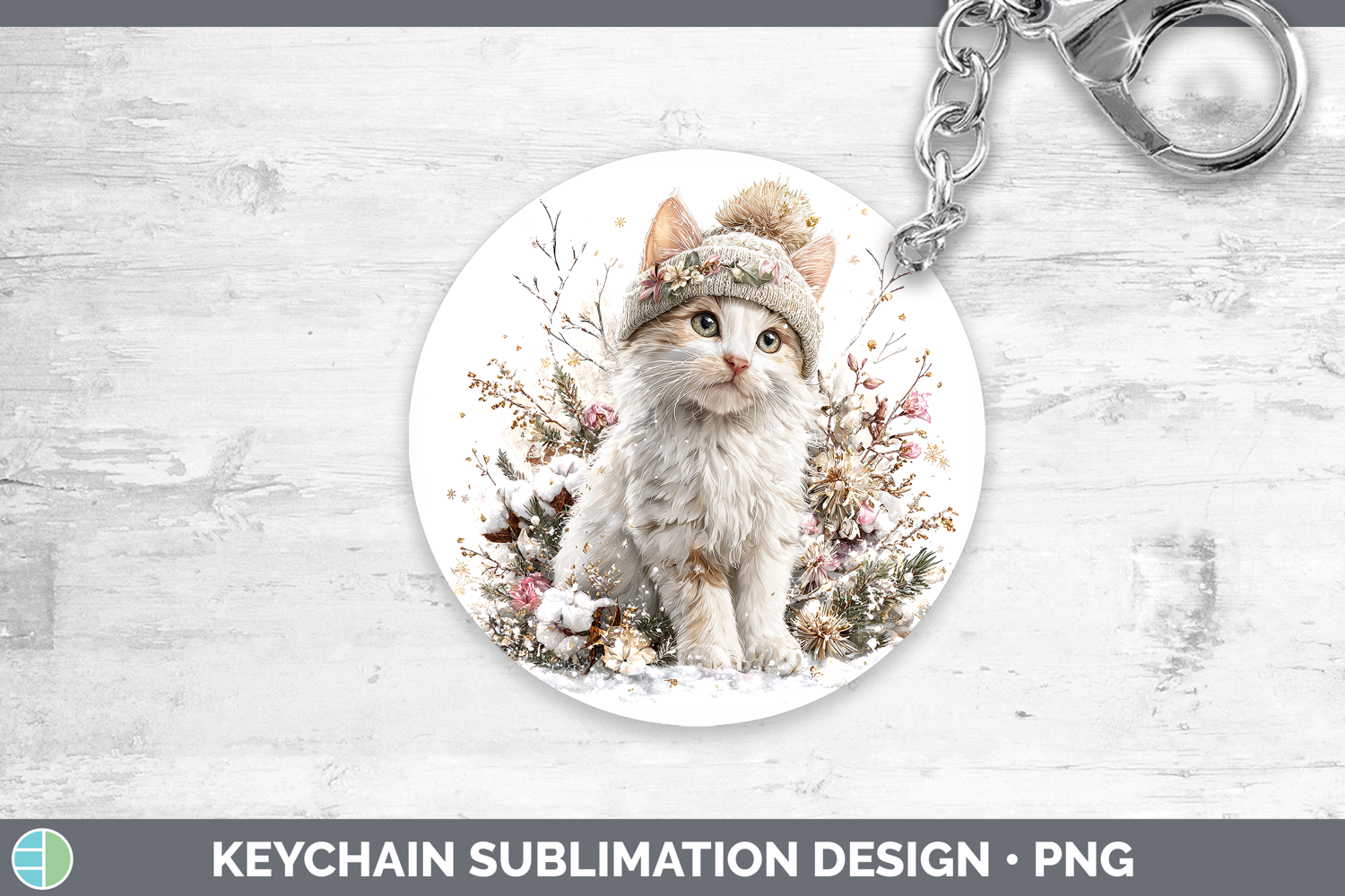 Similar Design Products to White Cats Winter Knit Hat Keychain Sublimation Design