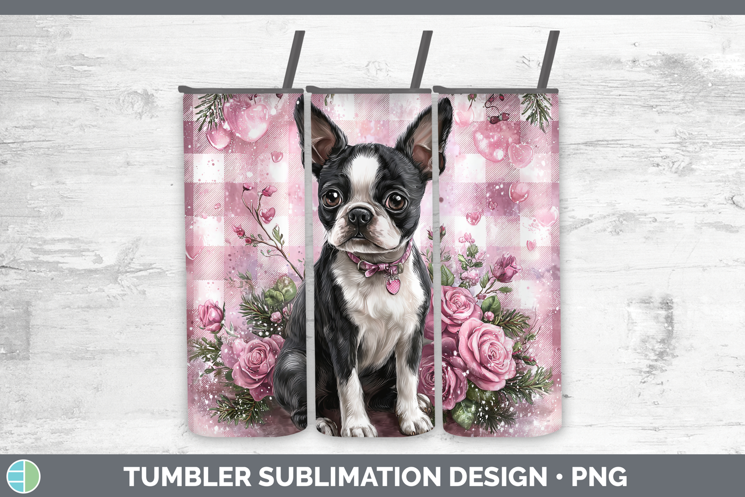 Similar Design Products to Boston Terrier Dogs 02 Checker Valentine Tumbler Sublimation