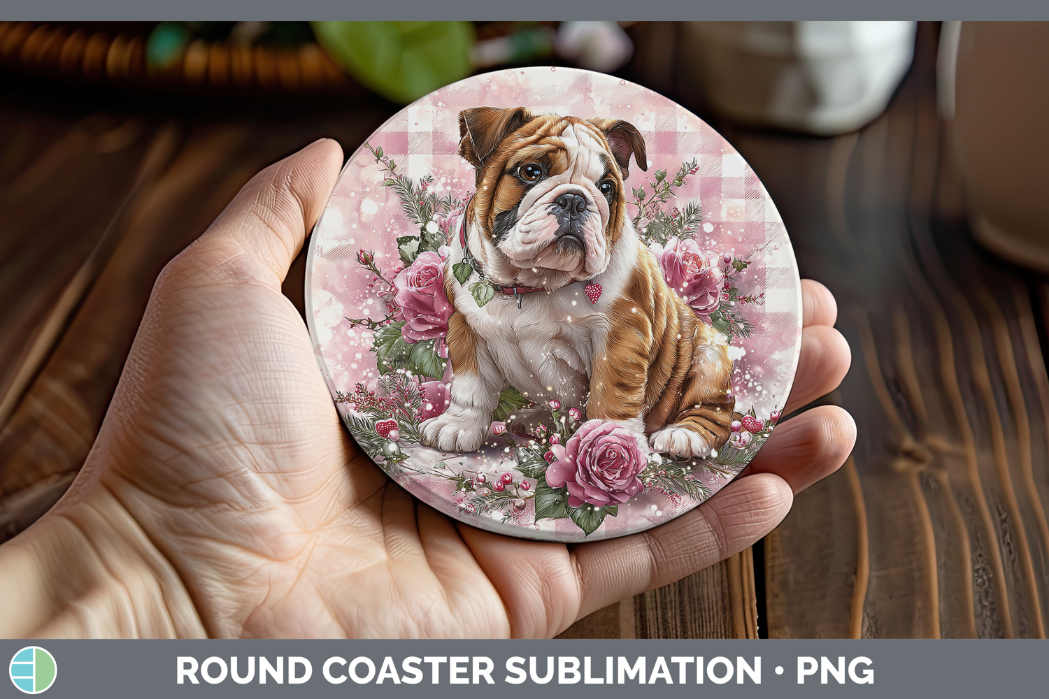 Bulldog Dogs 02 Checker Valentine Round Coaster Sublimation