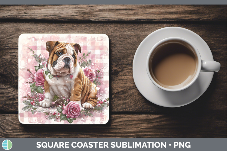 Bulldog Dogs 02 Checker Valentine Square Coaster Sublimation