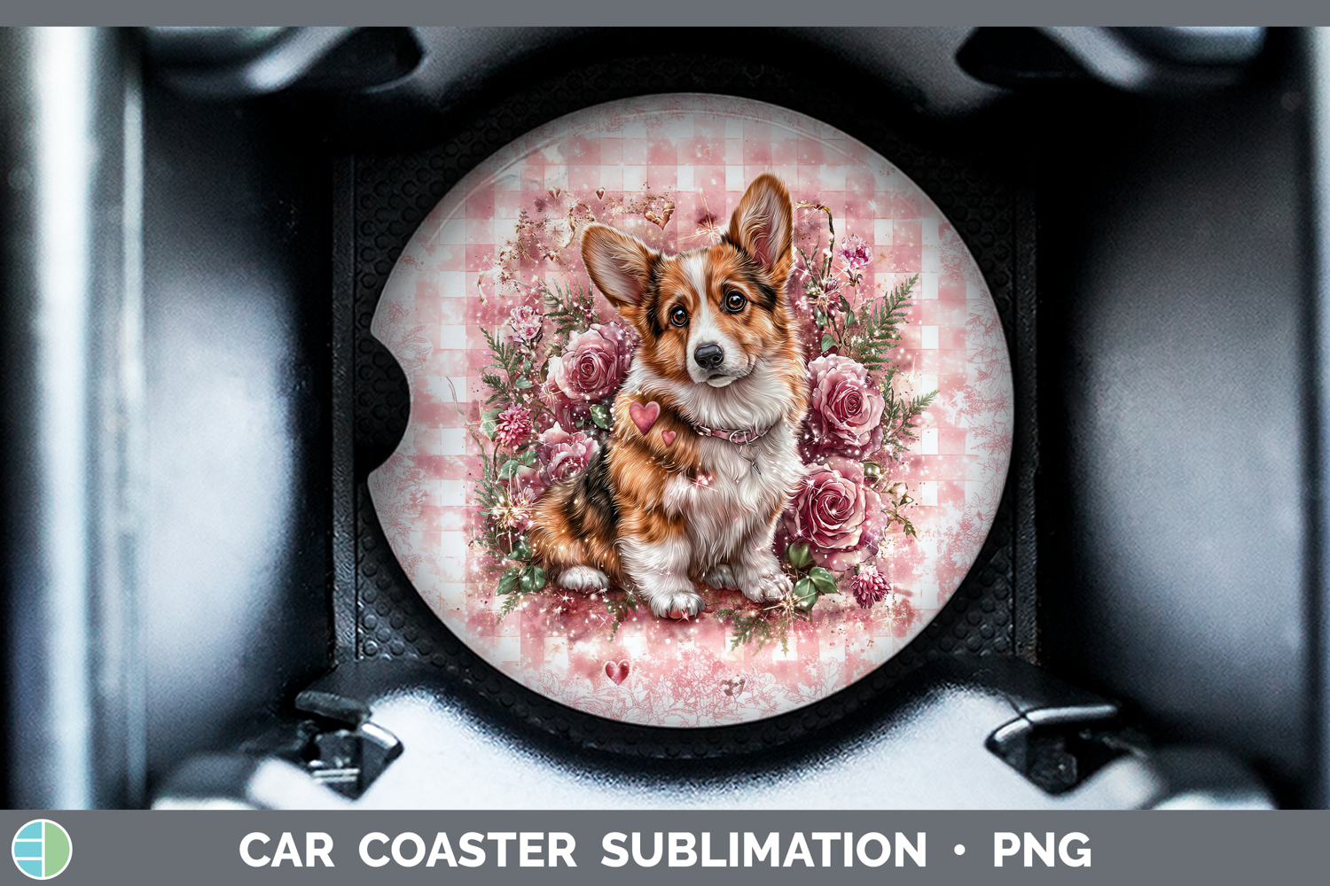 Pembrook Corgi Dogs 02 Checker Valentine Car Coaster Sublima