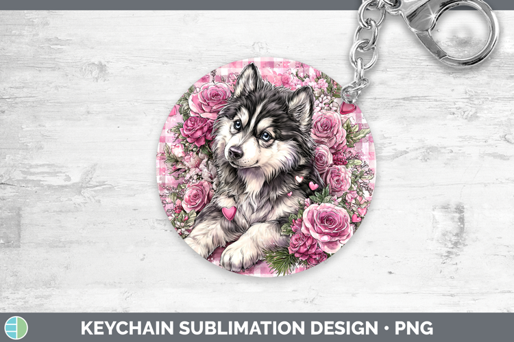 Husky Dogs 02 Checker Valentine Keychain Sublimation Design