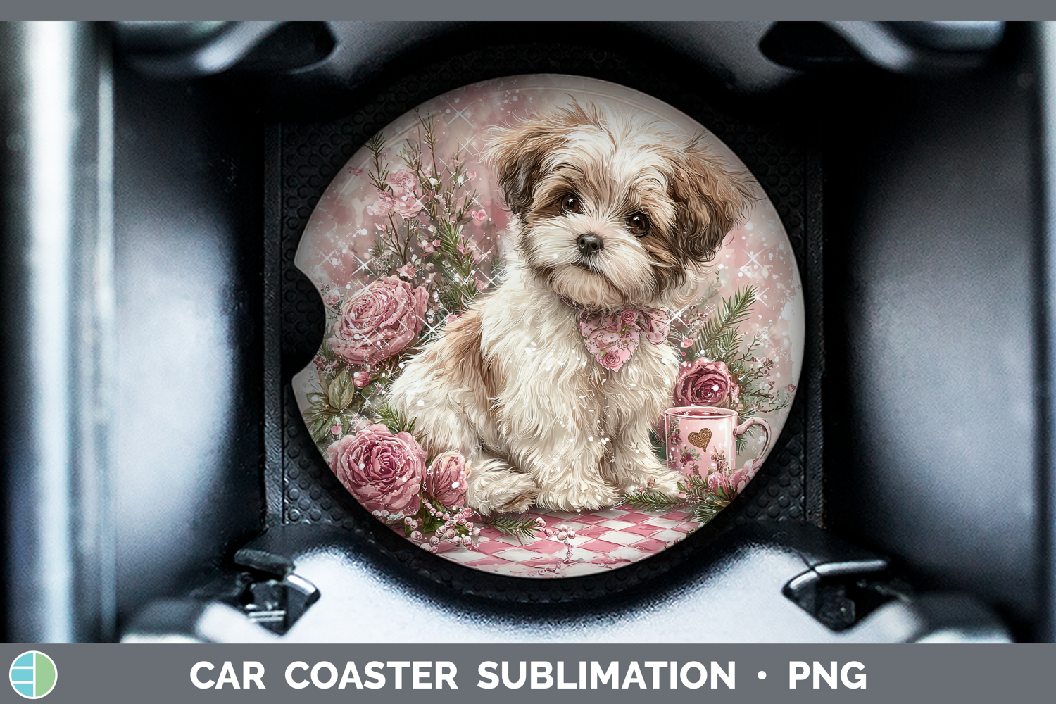 Similar Design Products to Shih Tzu Dogs 02 Checker Valentine Car Coaster Sublimation D