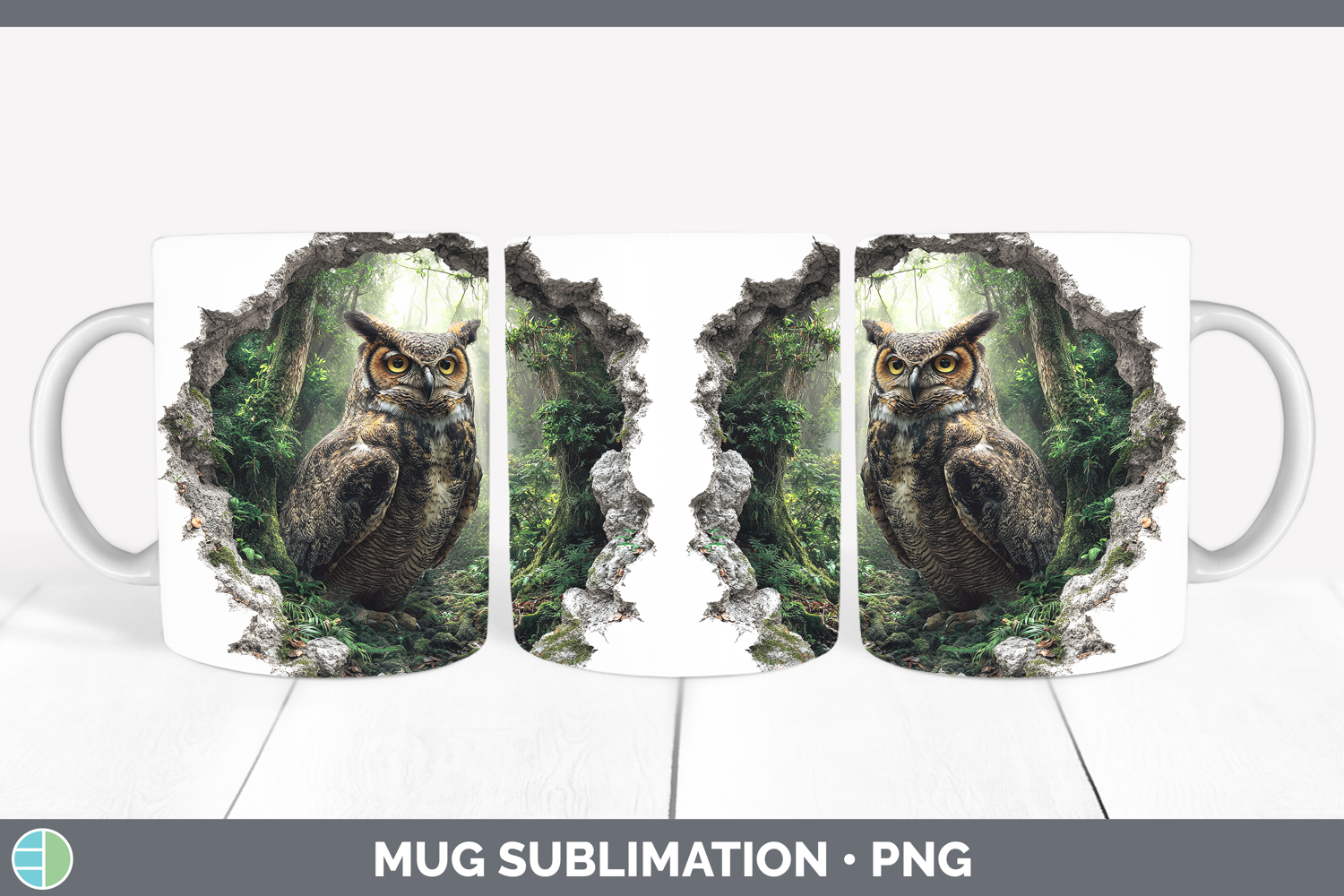 Owl Birds 01 3D Hole Mug Wrap Sublimation Design