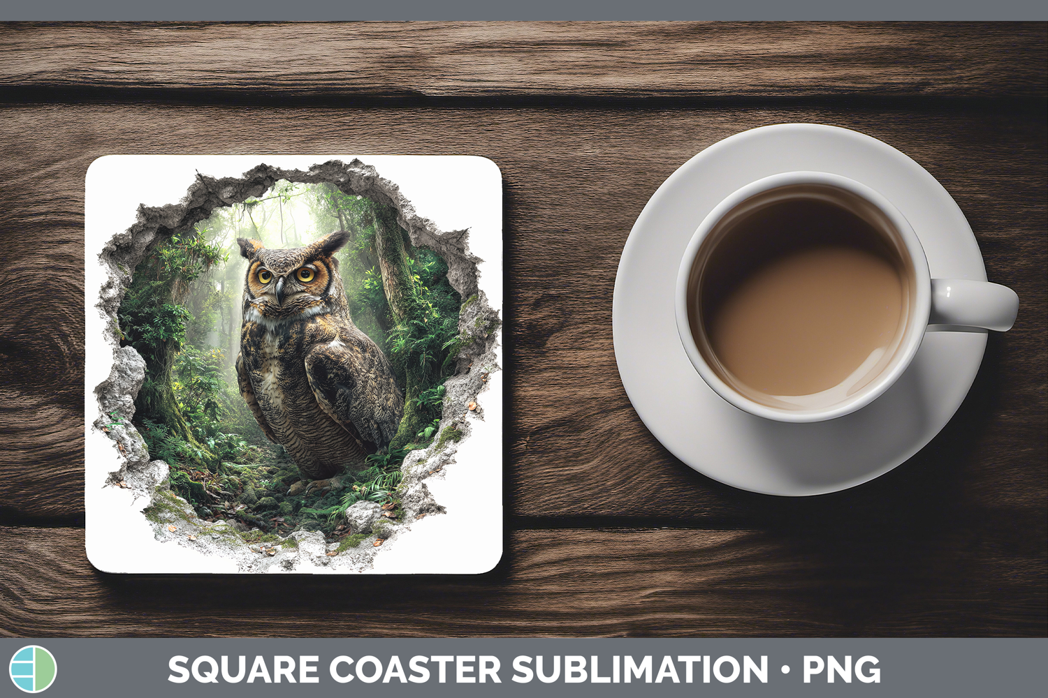 Owl Birds 01 3D Hole Square Coaster Sublimation Design