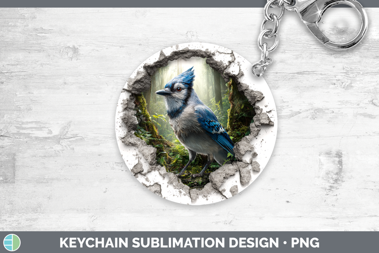 Blue Jay Birds 01 3D Hole Keychain Sublimation Design