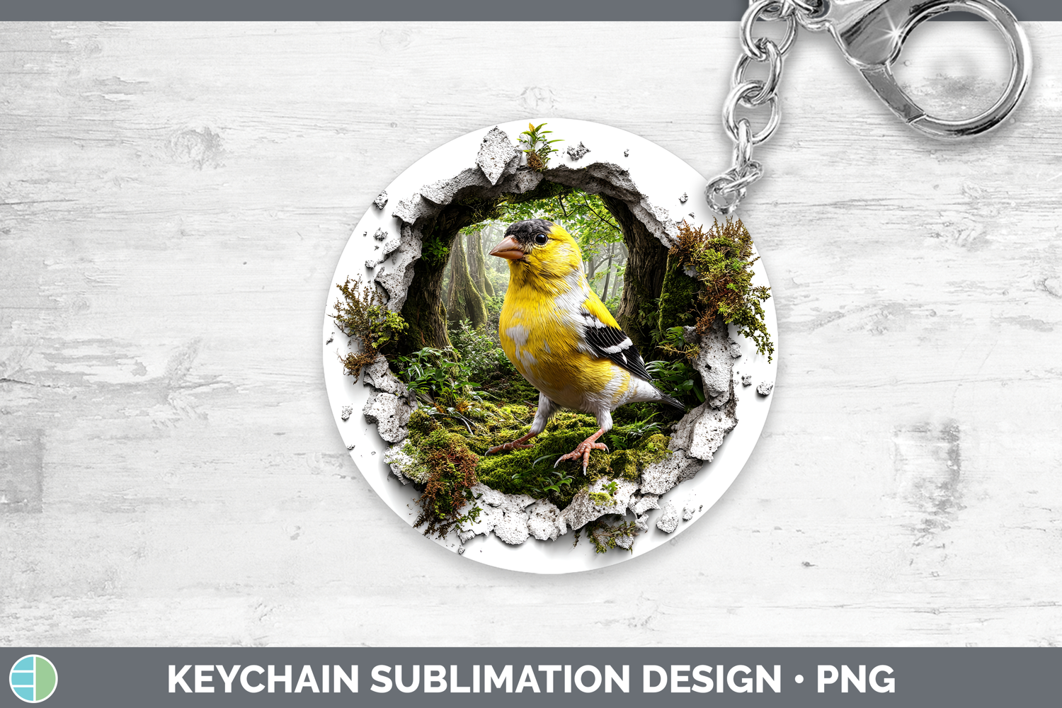 Goldfinch Birds 01 3D Hole Keychain Sublimation Design