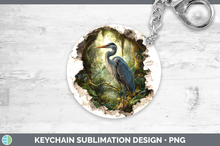 Great Blue Heron Birds 01 3D Hole Keychain Sublimation Desig