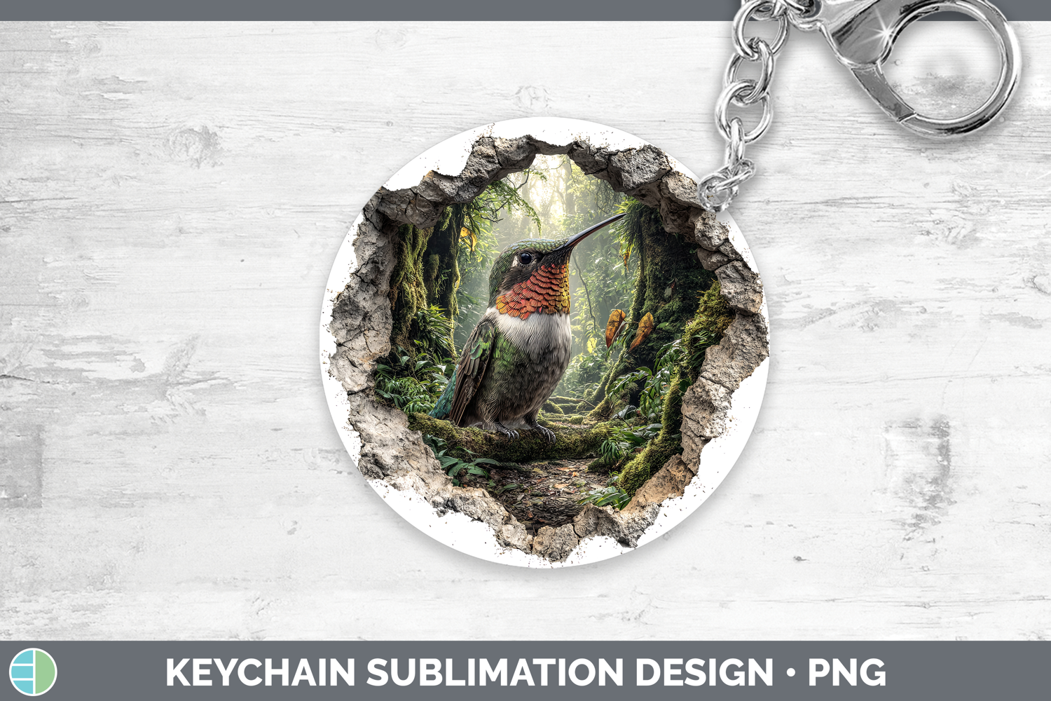 Hummingbird Birds 01 3D Hole Keychain Sublimation Design