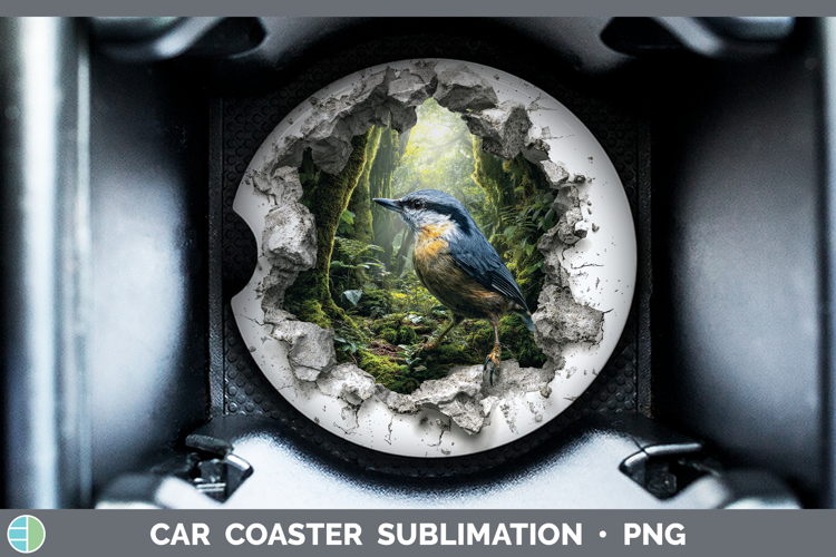 Nuthatch Birds 01 3D Hole Car Coaster Sublimation Design