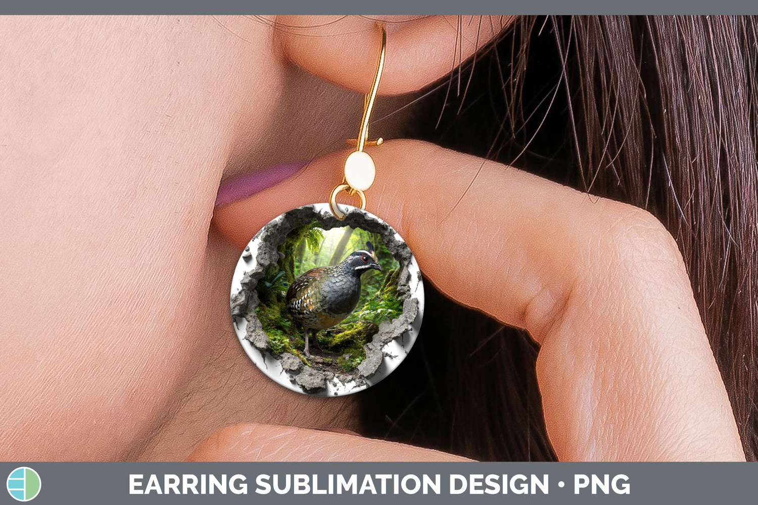 Quail Birds 01 3D Hole Round Earrings Sublimation Design