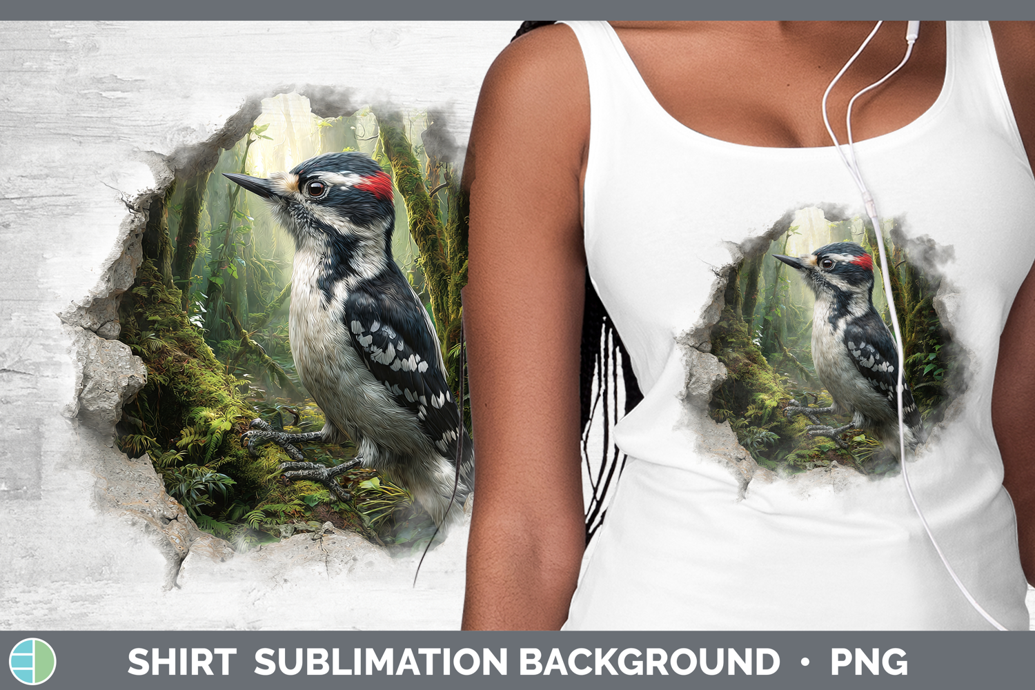 Woodpecker Birds 01 3D Hole Shirt Sublimation Design