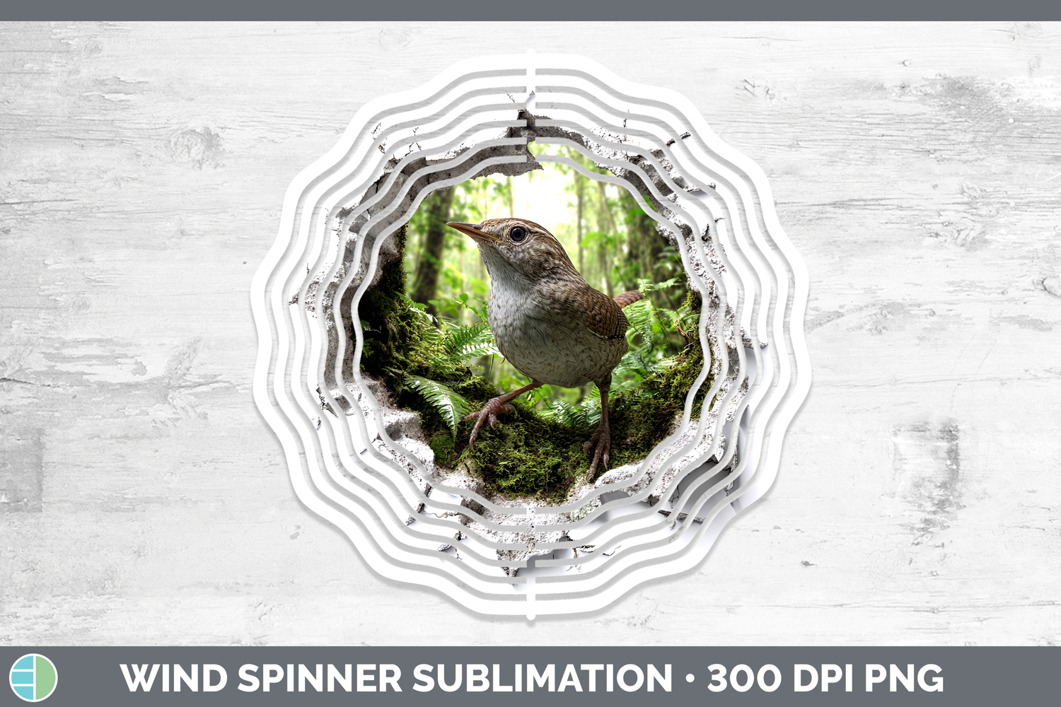 Wren Birds 01 3D Hole Wind Spinner Sublimation Design