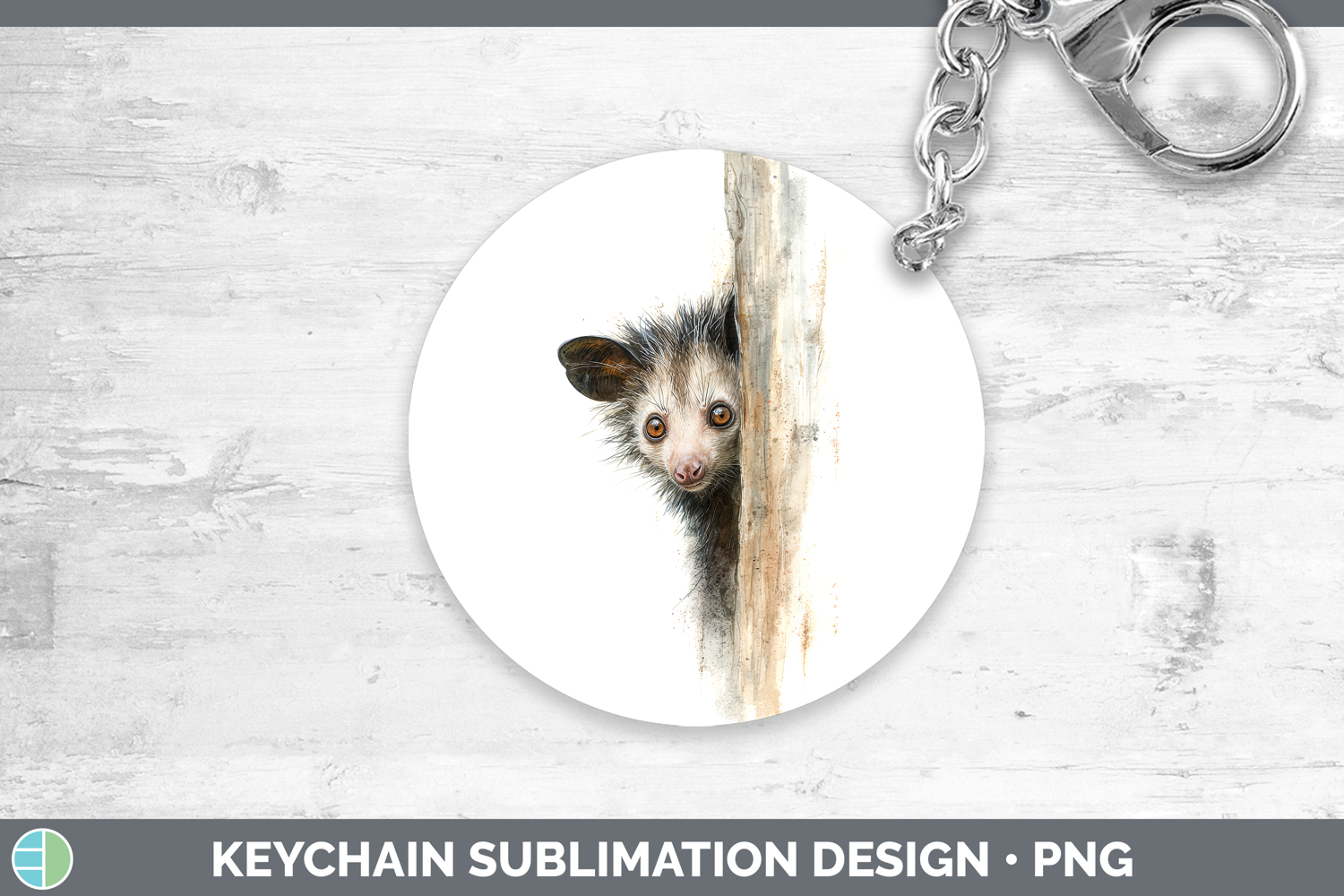 Aye-aye Primate Tree Peek-A-Boo Keychain Sublimation Design