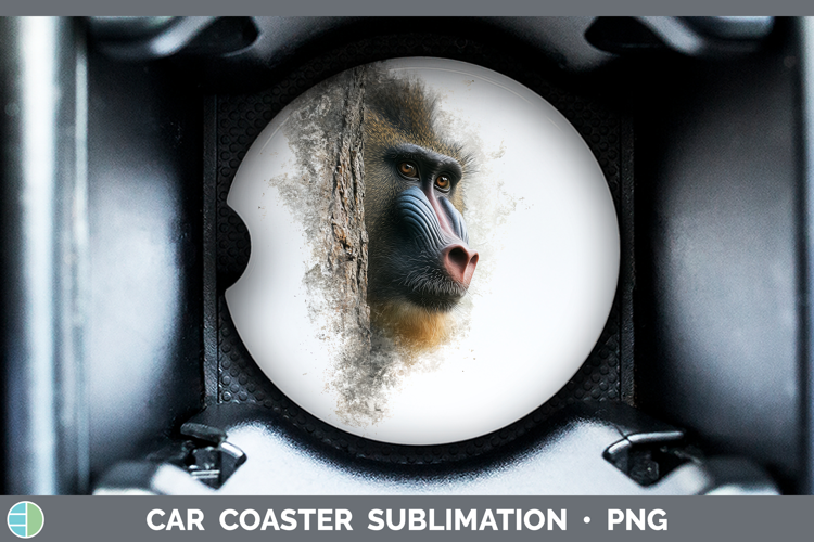 Mandrill Primate Tree Peek-A-Boo Car Coaster Sublimation Des