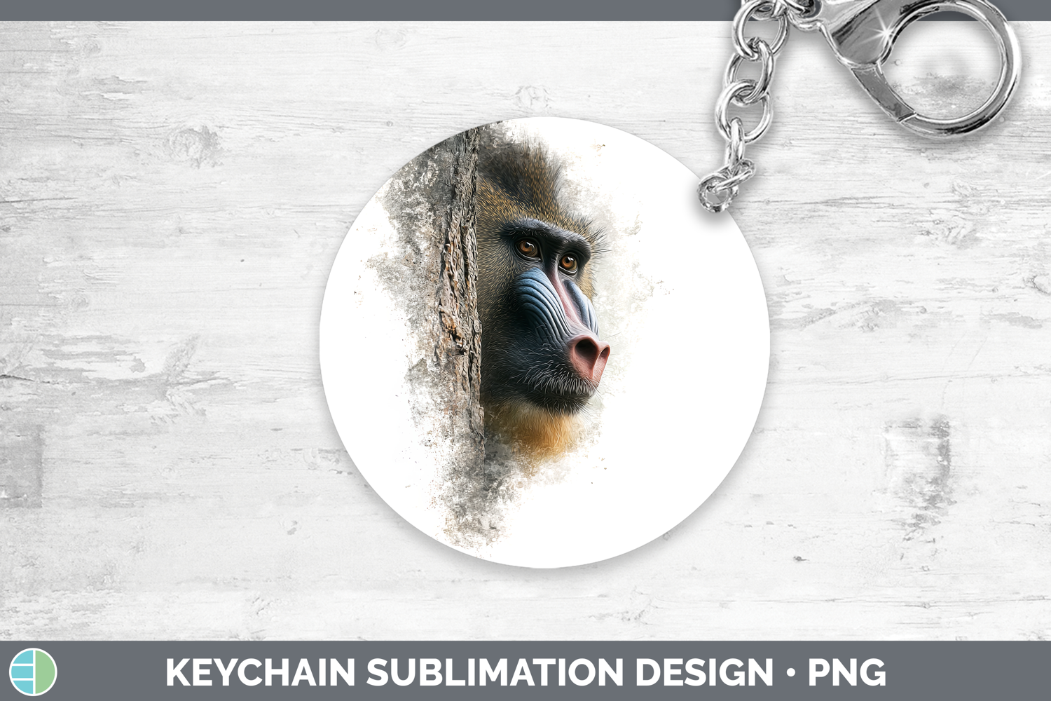 Mandrill Primate Tree Peek-A-Boo Keychain Sublimation Design
