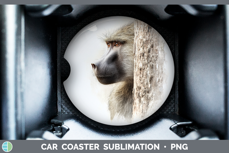 Baboon Primate Tree Peek-A-Boo Car Coaster Sublimation Desig