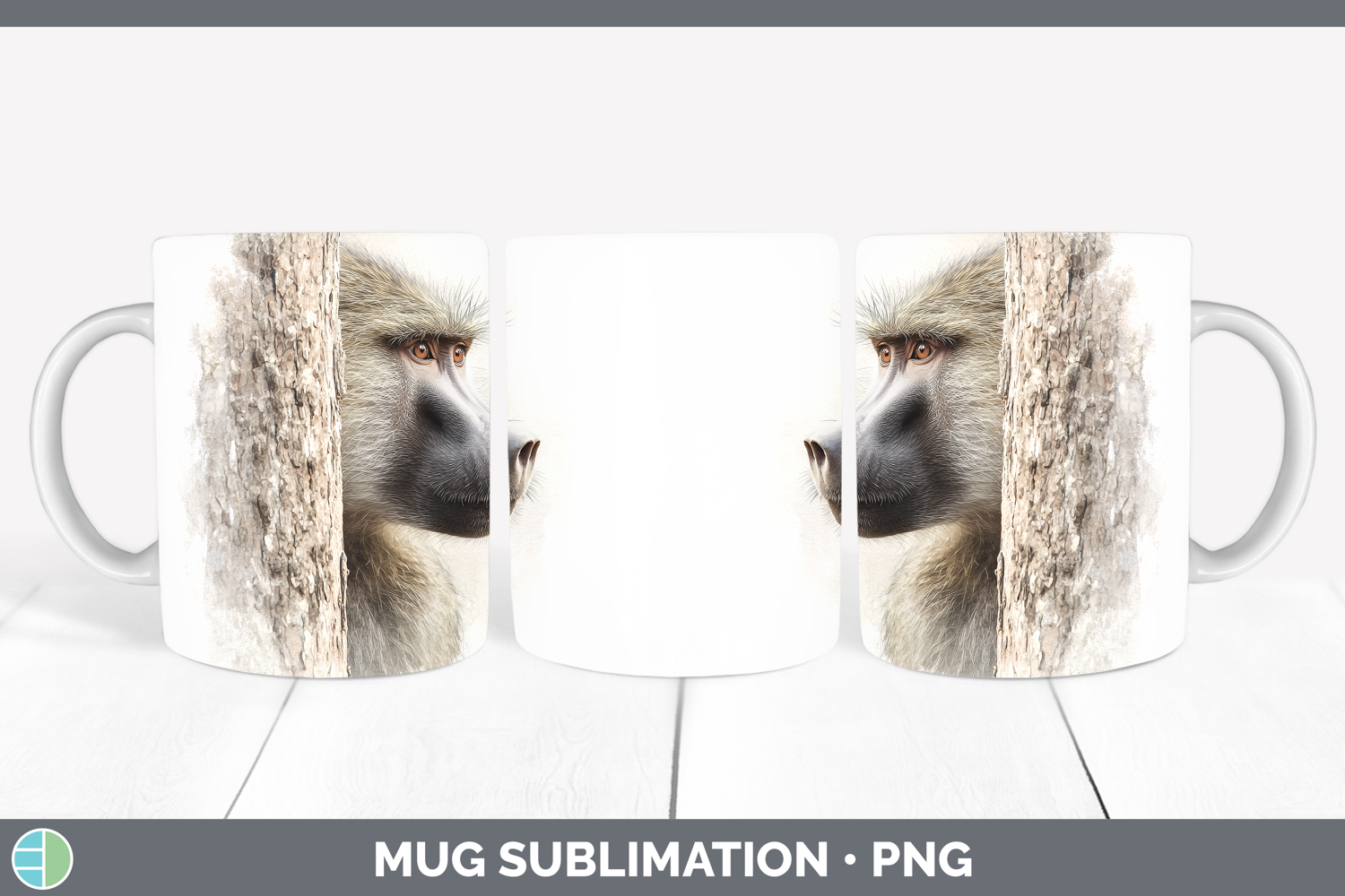Baboon Primate Tree Peek-A-Boo Mug Wrap Sublimation Design
