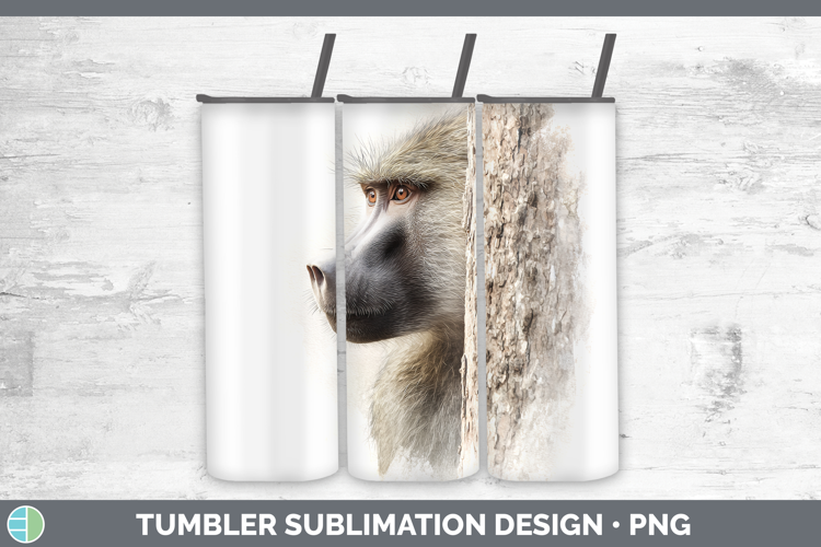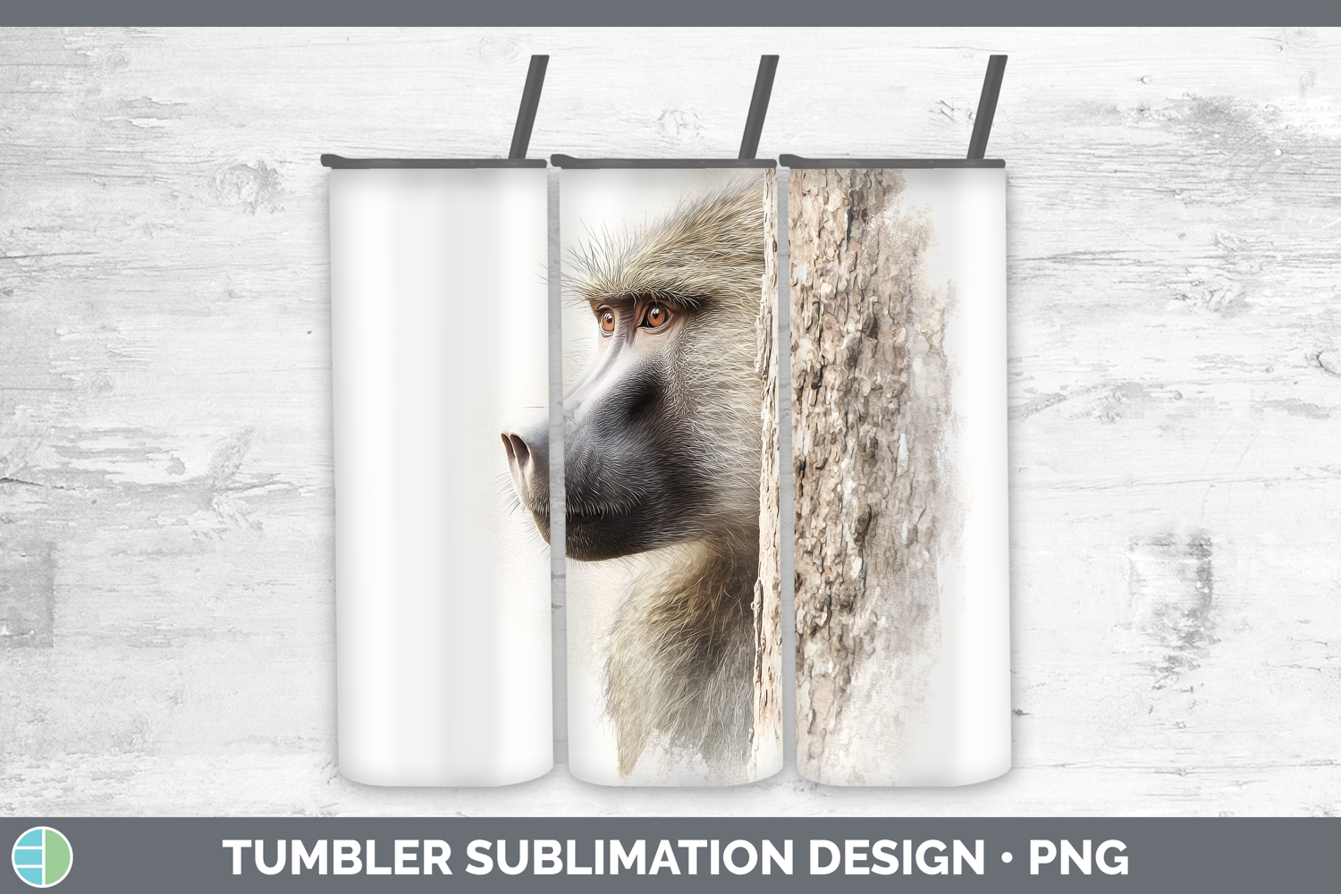 Baboon Primate Tree Peek-A-Boo Tumbler Sublimation Design
