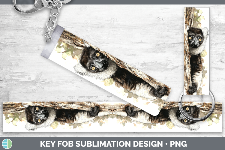 Ruffed Lemur Primate Tree Peek-A-Boo Key Fob Sublimation Des
