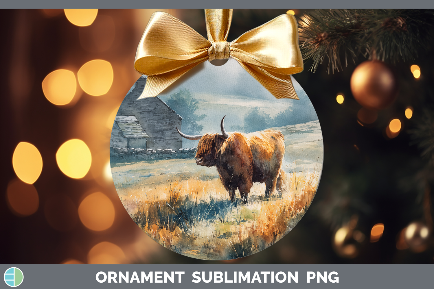 Highland Cow Farm Sunset Ornament Sublimation Design