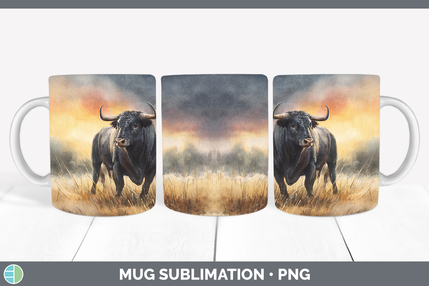 Bull Farm Sunset Mug Wrap Sublimation Design