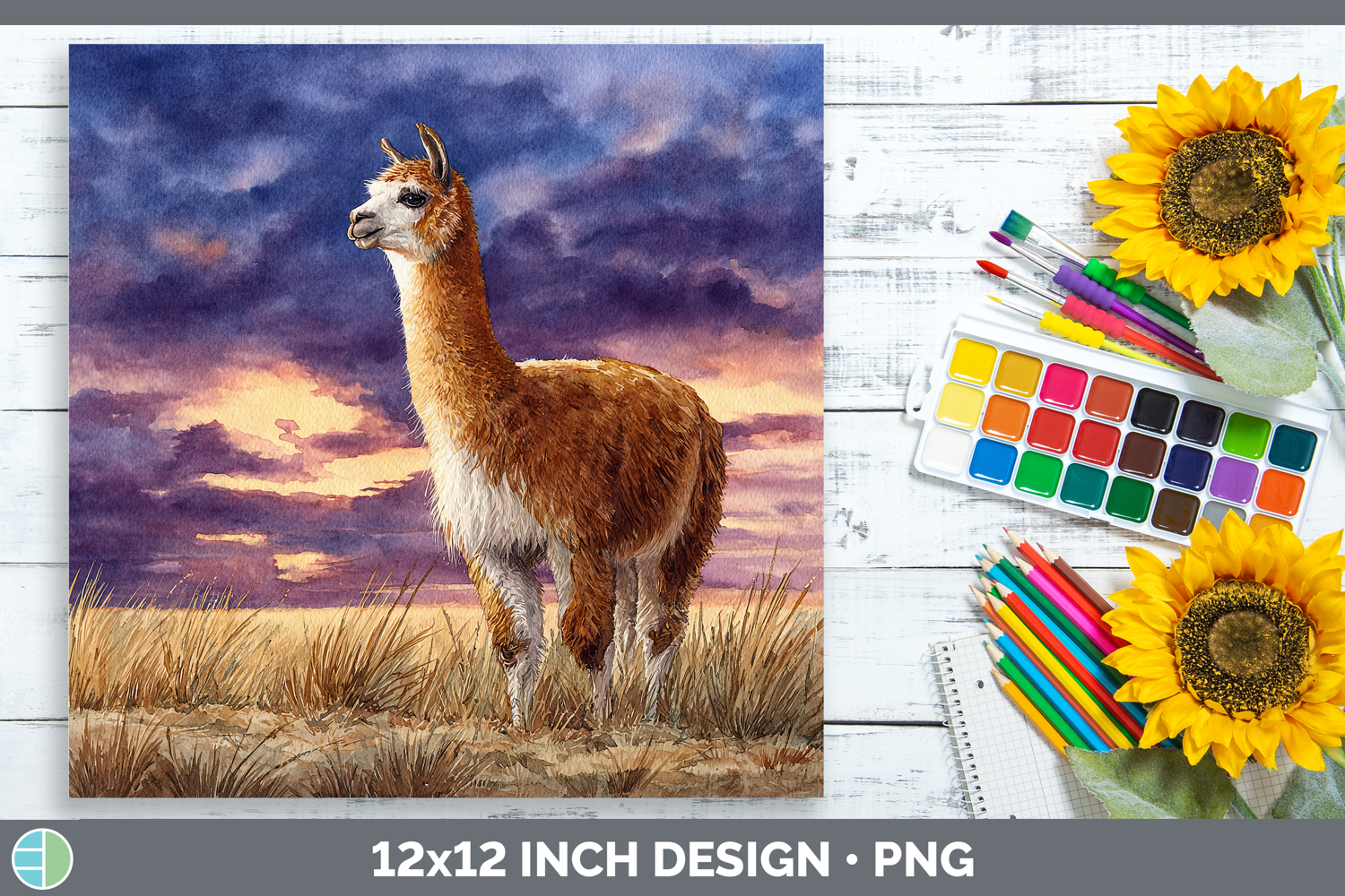 Alpaca Farm Sunset Paper Backgrounds Design