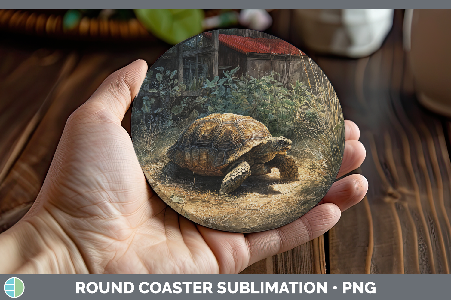 Tortoise Farm Sunset Round Coaster Sublimation Design