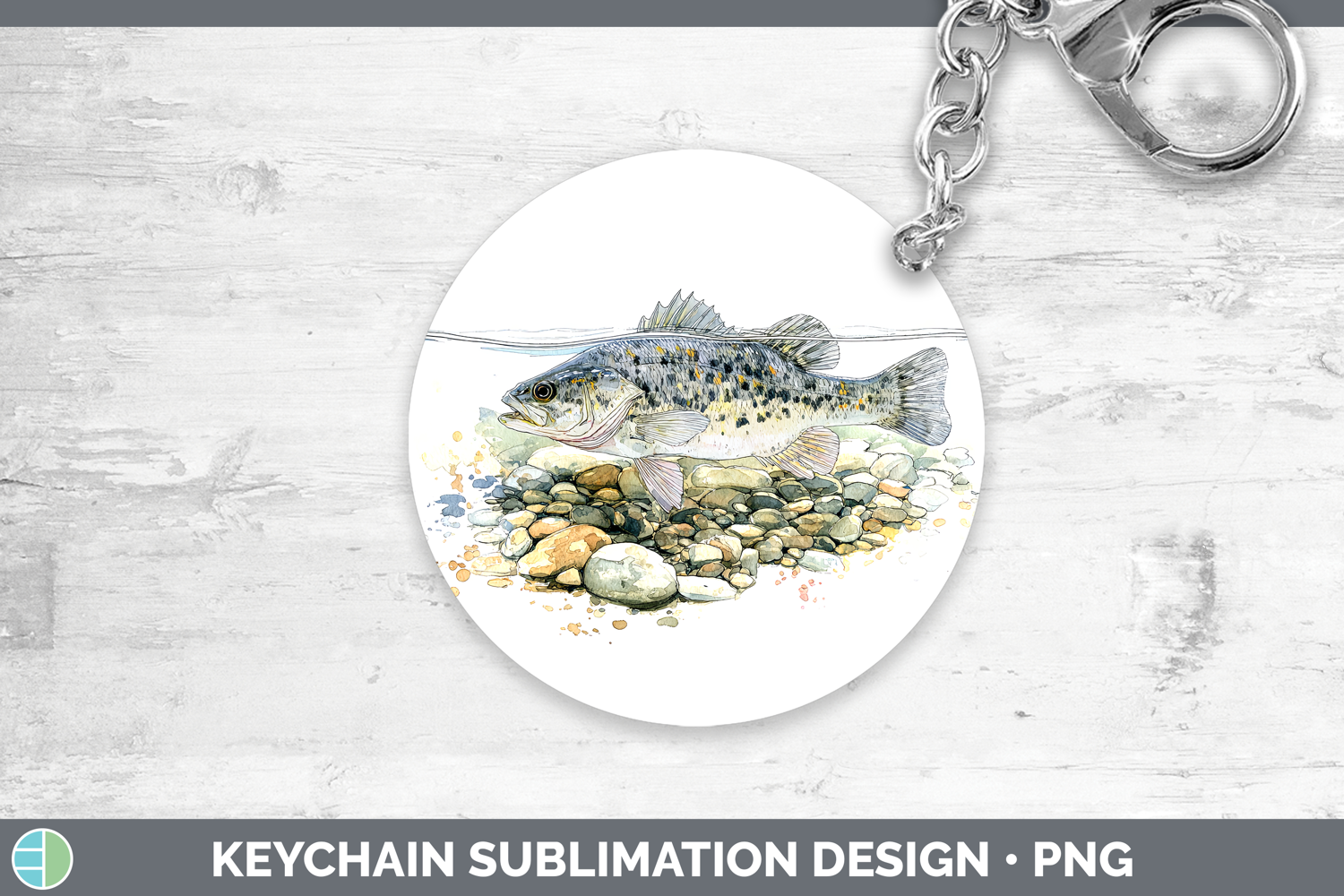 Smallmouth Bass Lake Fish Sketch Keychain Sublimation Design