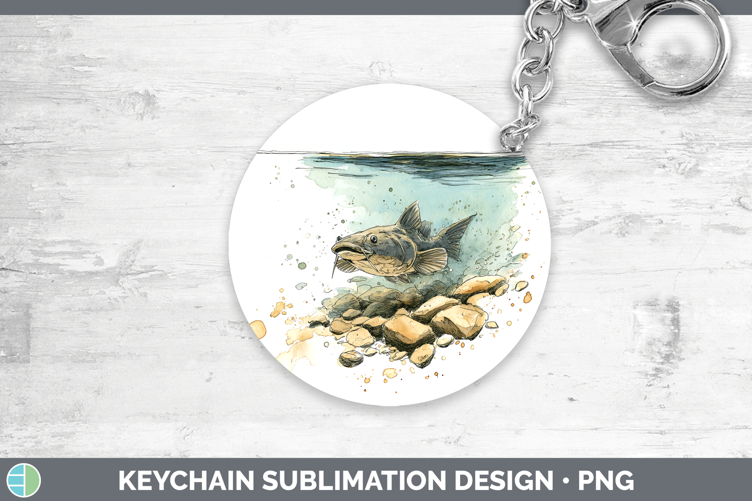 Flathead Catfish Lake Fish Sketch Keychain Sublimation Desig