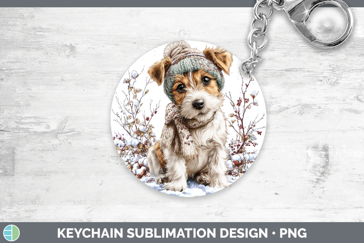 Fox Terrier Dogs 01 Winter Knit Hat Keychain Sublimation Des