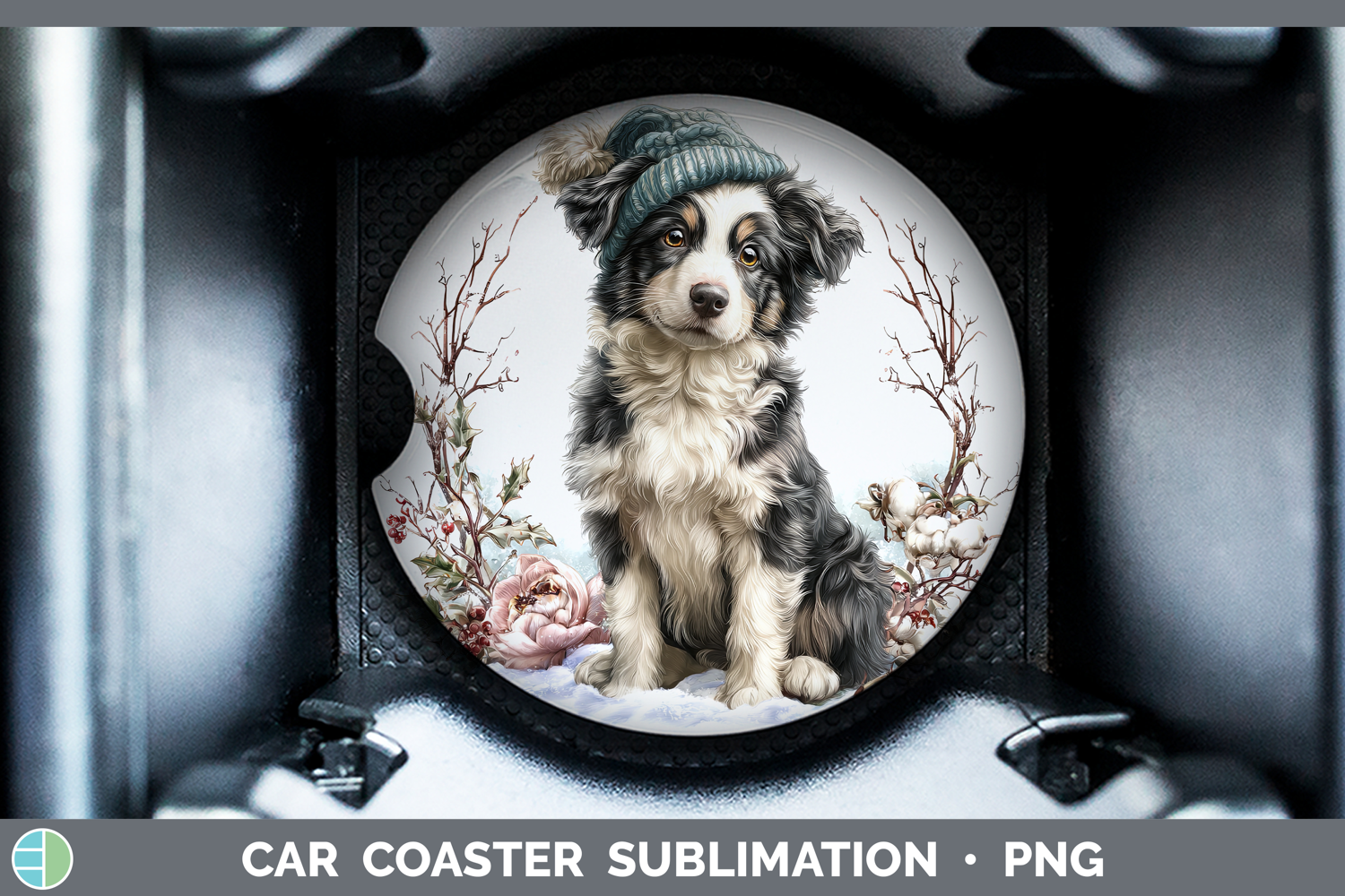 Border Collie Dogs 02 Winter Knit Hat Car Coaster Sublimatio