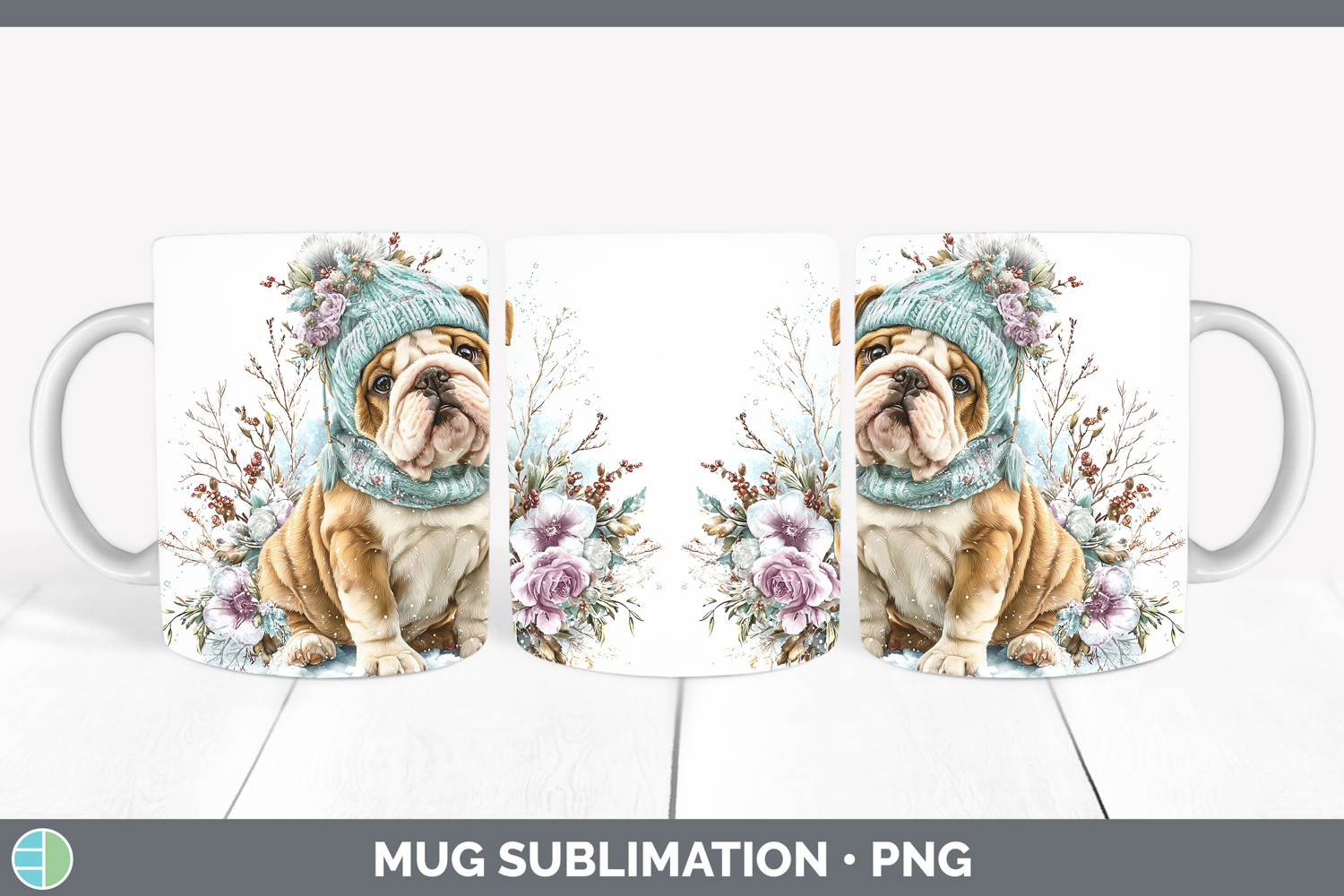 Similar Design Products to Bulldog Dogs 02 Winter Knit Hat Mug Wrap Sublimation Design