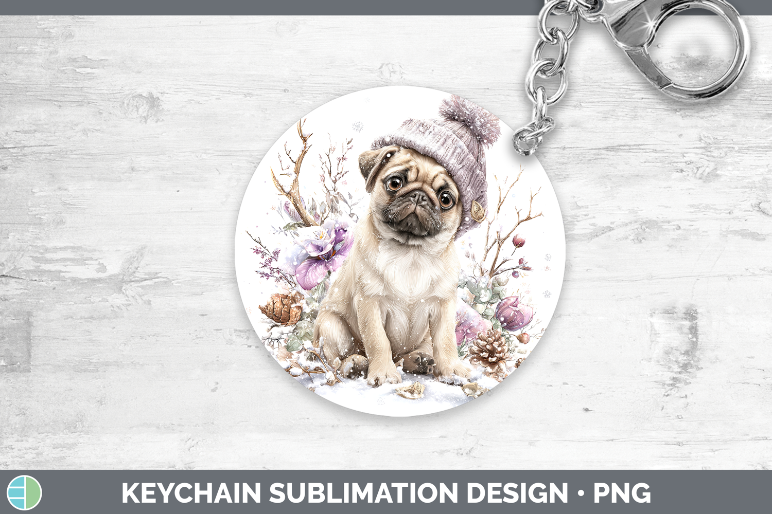 Pug Dogs 02 Winter Knit Hat Keychain Sublimation Design