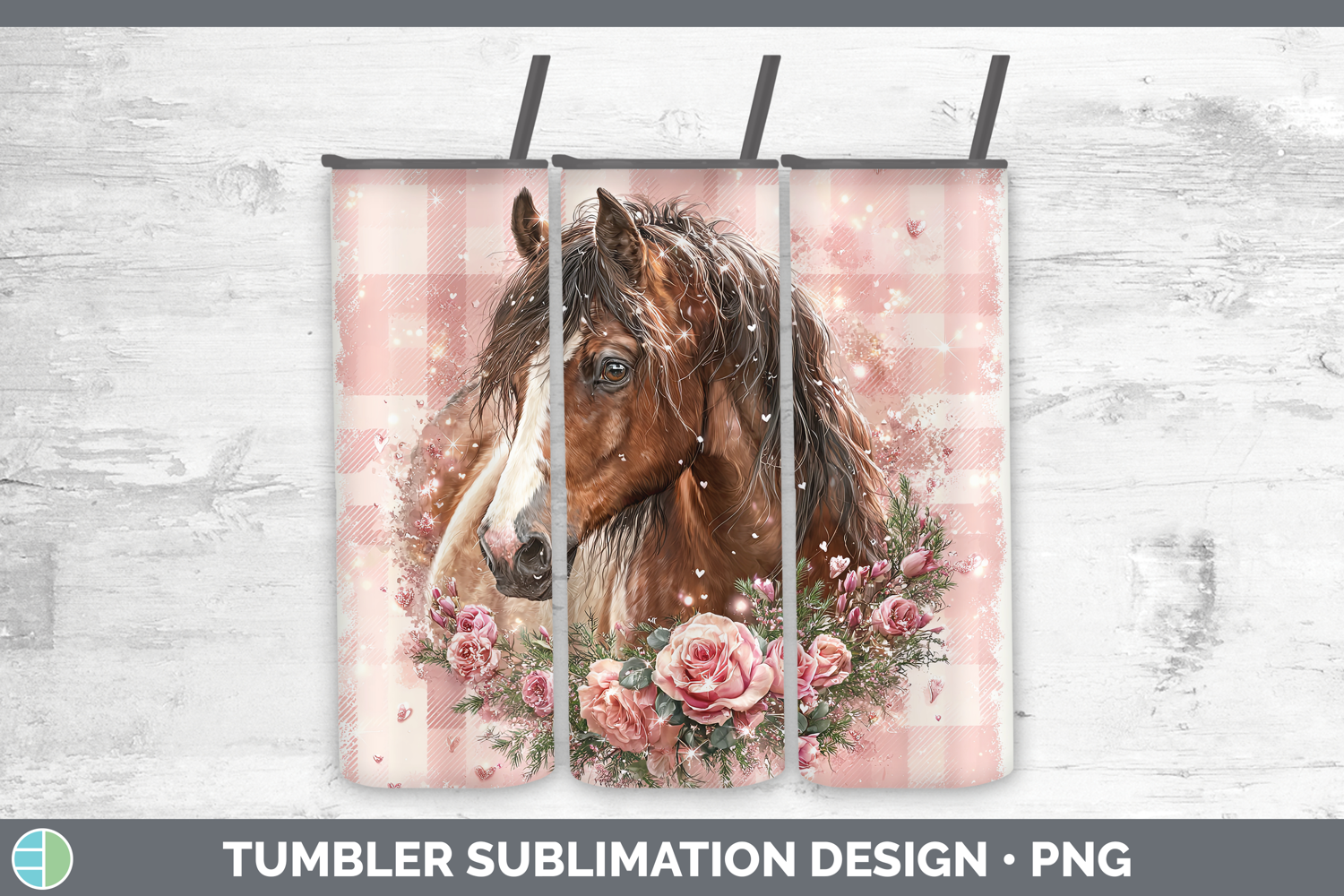 Horse Farm Checker Valentine Tumbler Sublimation Design