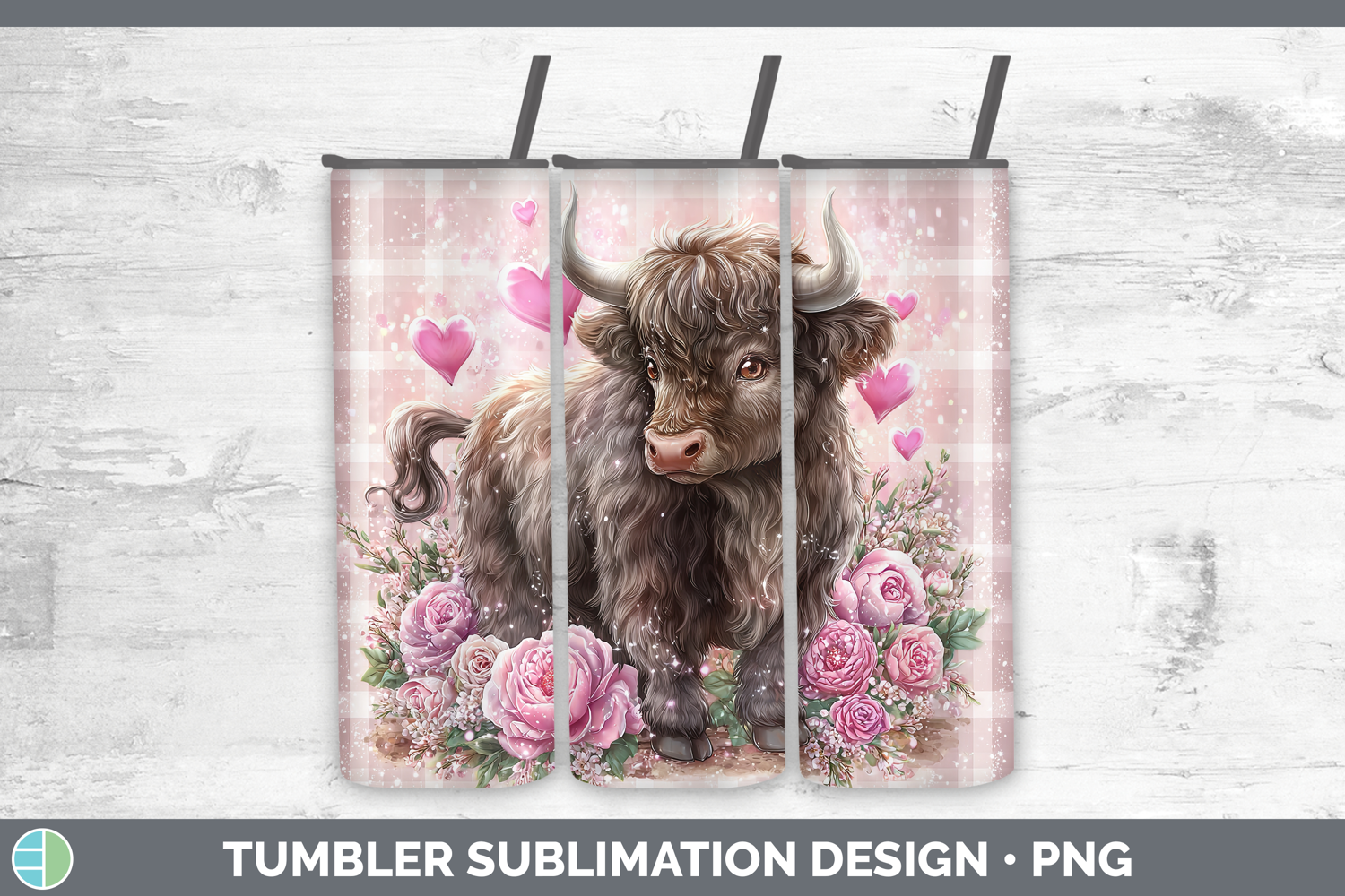 Bull Farm Checker Valentine Tumbler Sublimation Design