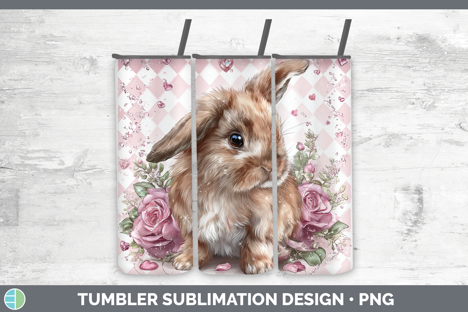 Bunny Farm Checker Valentine Tumbler Sublimation Design