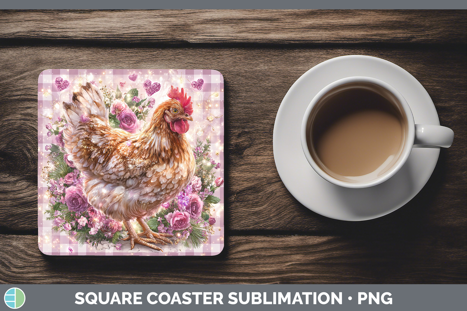 Chicken Farm Checker Valentine Square Coaster Sublimation De