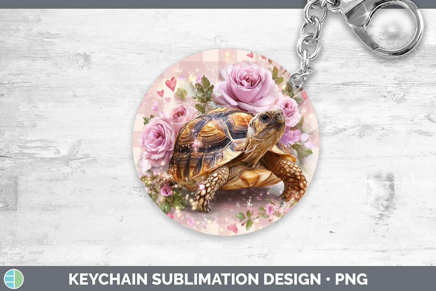 Tortoise Farm Checker Valentine Keychain Sublimation Design