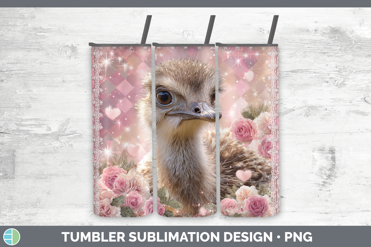 Ostrich Farm Checker Valentine Tumbler Sublimation Design