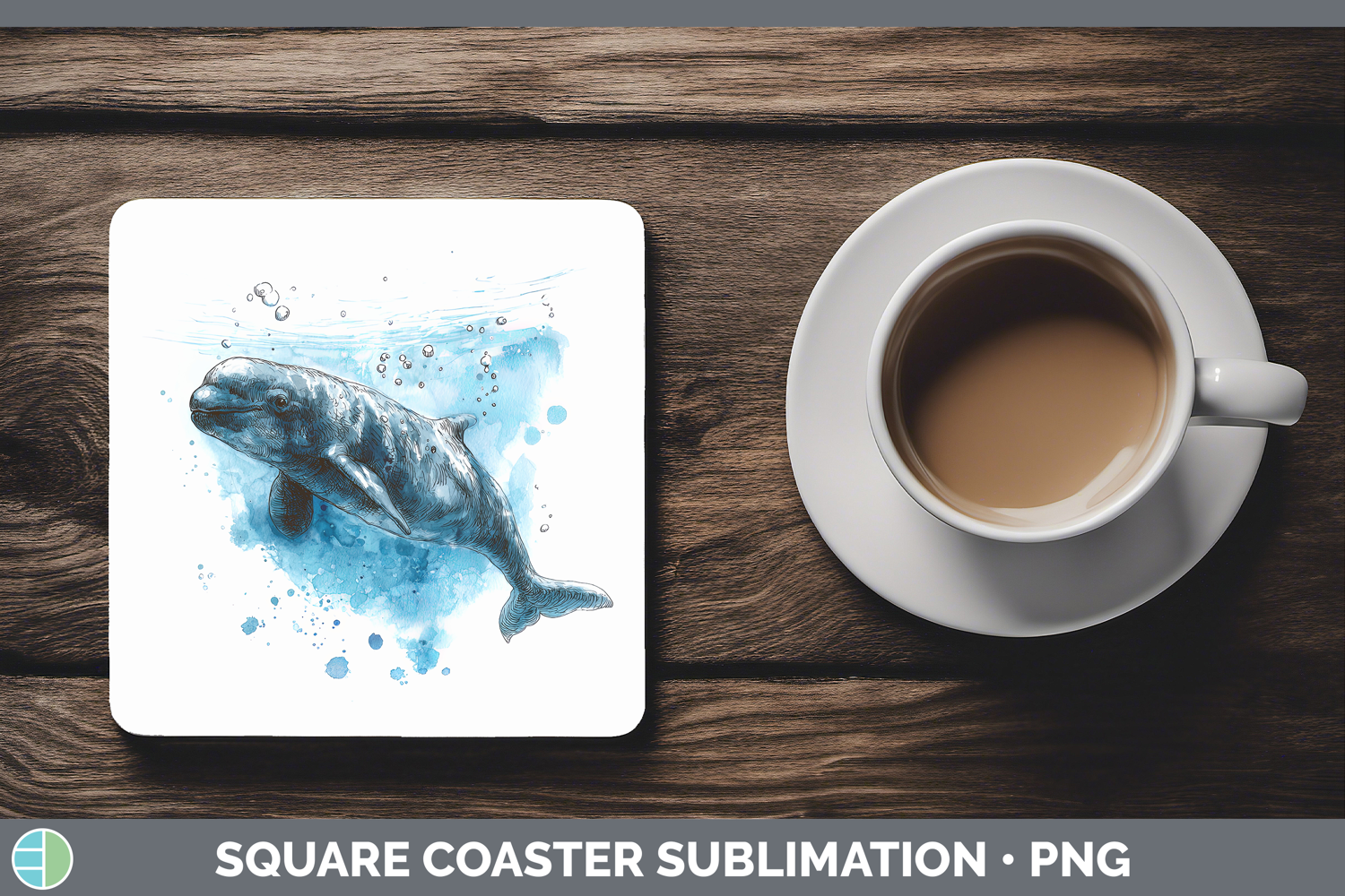 Pilot Whale Whales Sketch Square Coaster Sublimation Design